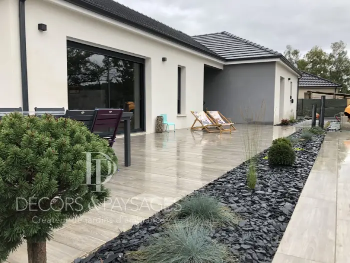 Que vous disposiez d’un jardin spacieux ou d’une terrasse attenante à votre maison à Dijon, un aménagement de terrasse extérieure transforme chaque coin en un véritable lieu de vie. Chez Décors & Paysages, nous accompagnons depuis plus de 20 ans les particuliers de la région dijonnaise dans leurs projets d’aménagement jardin et terrasse. Notre équipe de paysagiste à Dijon est à votre écoute pour concevoir un extérieur à votre image, que vous souhaitiez créer un coin repas convivial, une terrasse bois chaleureuse ou un espace détente moderne.